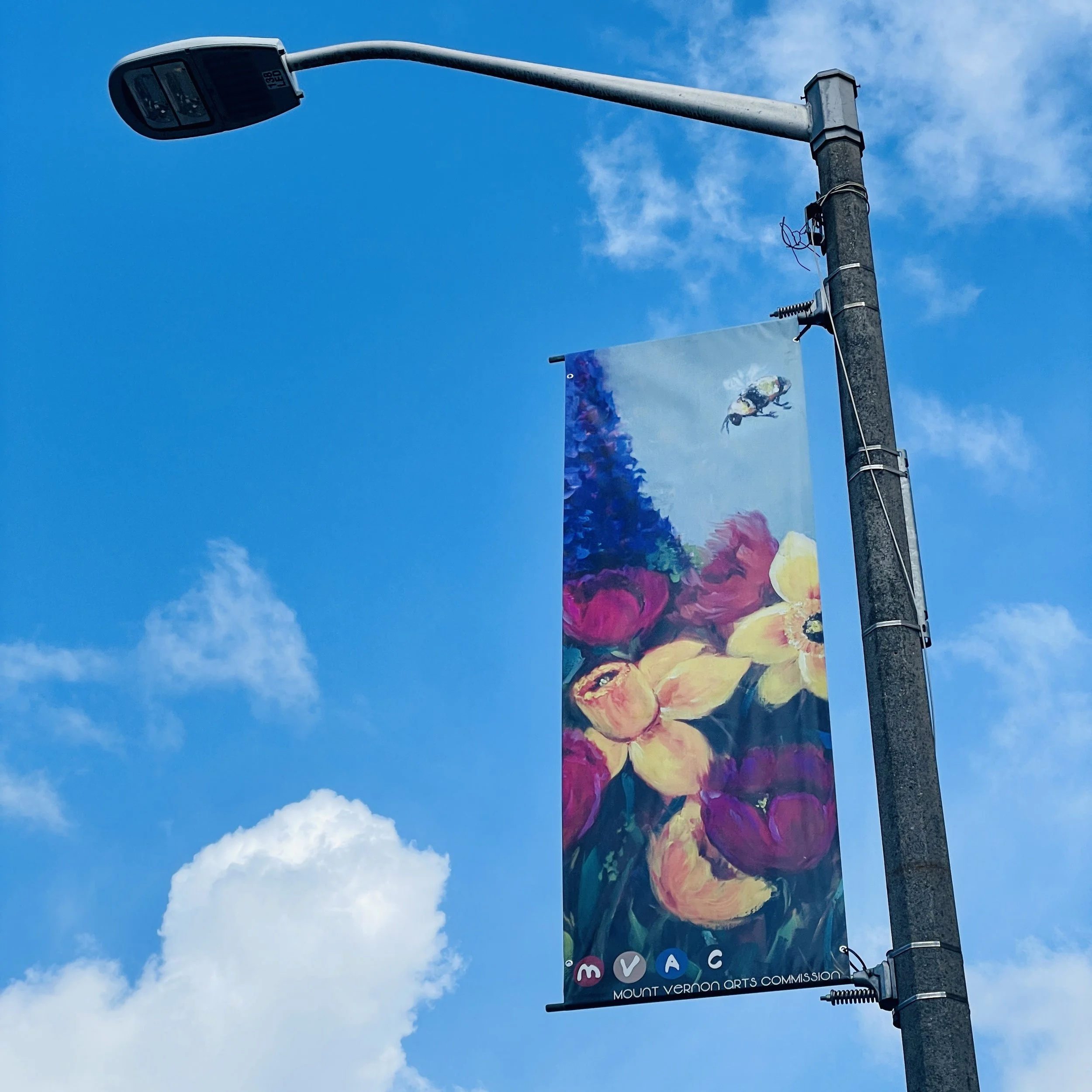 These banners are part of a Mount Vernon Arts Commission’s Skagit Impressions project celebrating Mount Vernon's natural beauty, culture, and heritage, and are designed to engage the community. The banners showcase local artists from the state of Washington and add vibrancy and color to the City's streetscape while promoting the diverse culture of Mount Vernon and Skagit County.