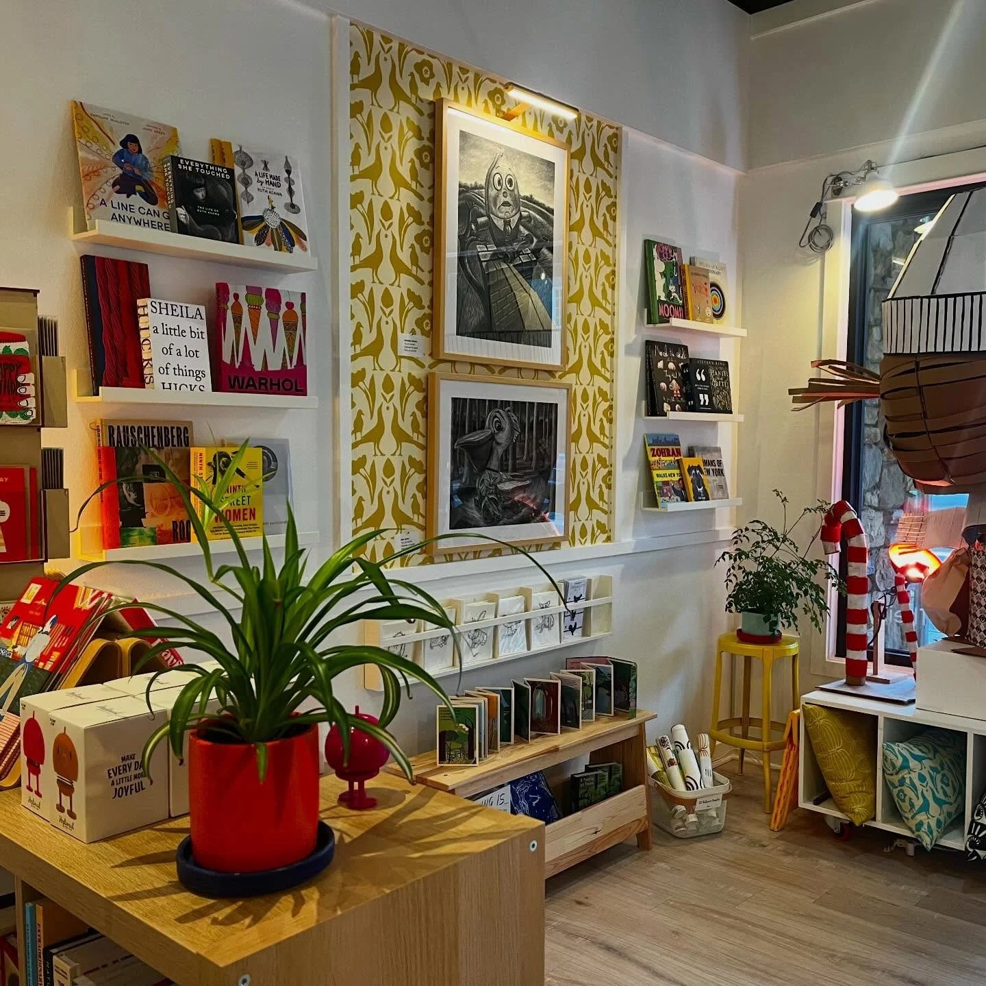 Even on a grey-skied afternoon in Downtown Mount Vernon, KLT:works seems to glow from the inside out. Soft light spills through the front door, catching the bright spines of art books and the smooth textures of hand-printed textiles. The space feels alive, joyful, eclectic, and unmistakably creative.