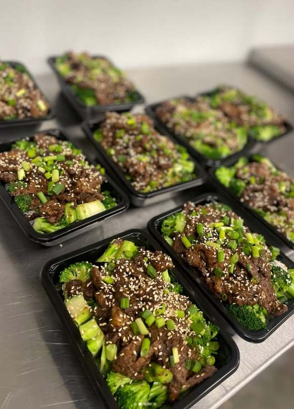 To the right, a row of well-stocked fridges and freezers hum softly. Their glass doors reveal shelves lined with neatly labeled, ready-to-heat meals. Meals here range from a hearty beef stroganoff to vegetarian options like tempeh enchiladas, all made in-house with only locally sourced ingredients.